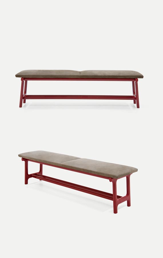 Philippe Tabet produces the Fushimi family of furniture, closely linked to the Inari series, inspired by one of Kyoto’s most important sacred places: the Fushimi Inari temple. The simplicity and harmony of these architectural elements so dear to Japanese culture struck a chord with the designer, who has chosen to echo the structure, traditionally formed of two vertical columns supporting a horizontal post on top. As a reinterpretation of this arrangement on a much smaller scale, Fushimi makes it the key feature of its design. Solid ash wood is the hero of each piece, lovingly milled and turned so that there are no sharp edges, instead displaying a delicate tactility. The same meticulous care is also evident in the joints, softly delineated to ensure the lines flow with unbroken continuity and connect the parts for a harmoniously seamless look. Symmetry, balance, elegance and formal minimalism form the underlying theme of Fushimi, which effectively conveys an idea of lightness and essentiality.