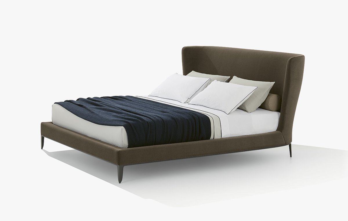 La collezione Gentleman, disegnata da Marcel Wanders, si amplia dal living alla zona notte. Come il nucleo originario, composto di poltrone, pouf e divano, anche la nuova estensione si riconosce per lo stile classico ed esclusivo e la cura nei dettagli, perfetto mix di comfort e raffinatezza. Il letto richiama l’alto poggiatesta di Gentleman Reserved nel disegno alto e curvo della testiera. Riferimenti classici per comodino e comò, con top in laccato opaco colori.