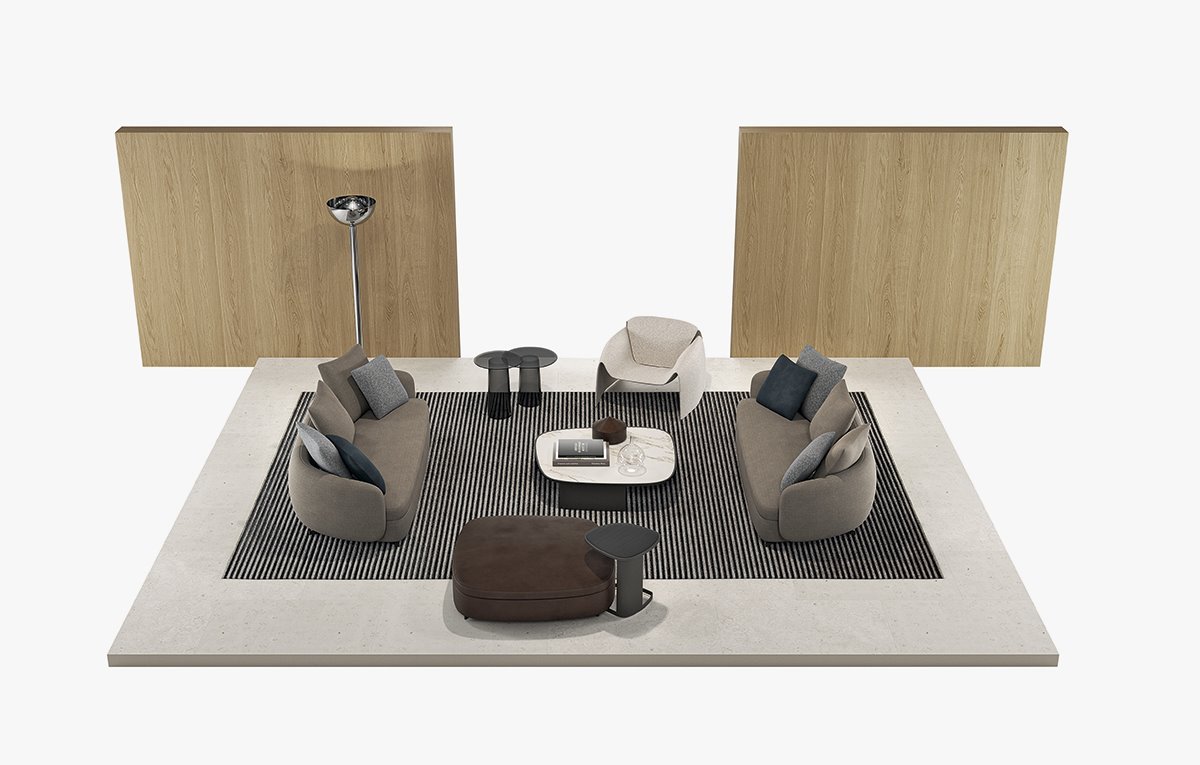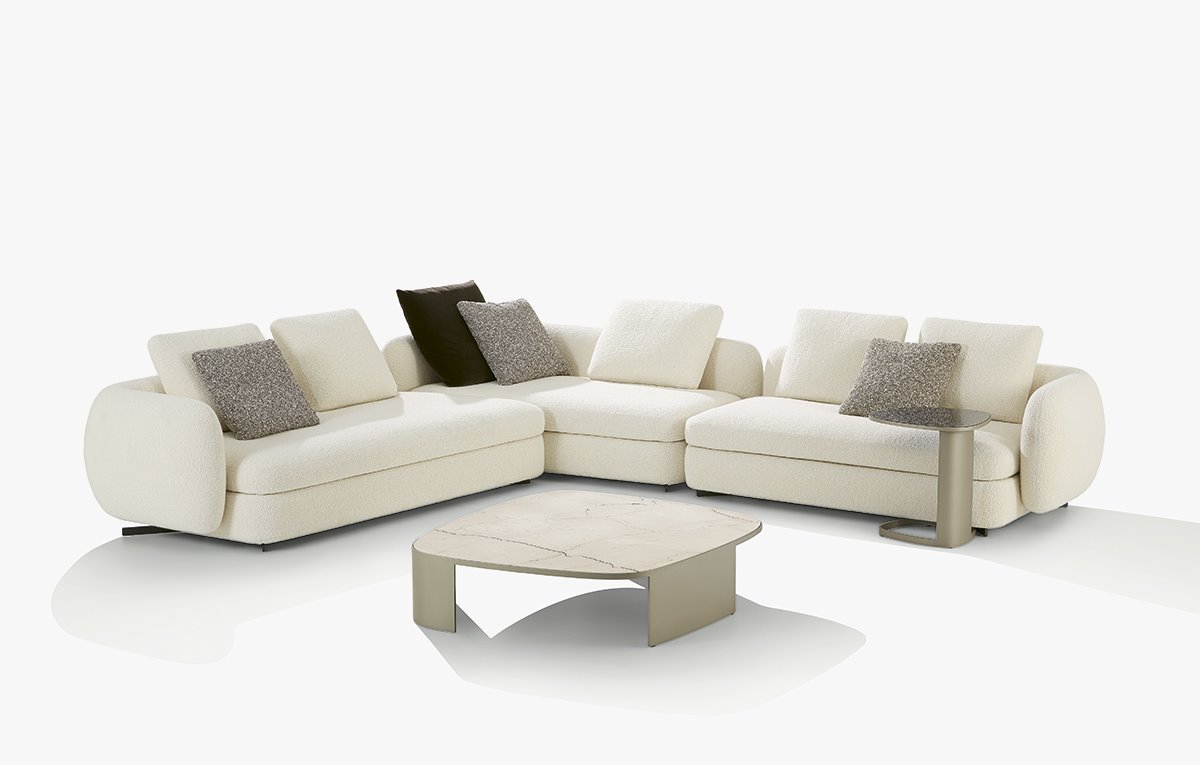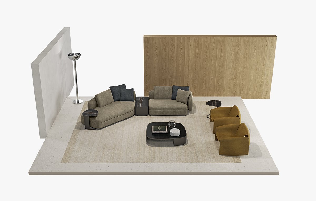 Saint-Germain è un sistema di divani ed elementi imbottiti dalle forme sinuose e sensuali. Un segno avvolgente e rotondo ricorre in tutti i moduli della serie, con cui si creano divani lineari, configurazioni a L o composizioni organiche. Il rivestimento, in tessuto o pelle, valorizza i volumi, pieni e voluttuosi. Progettato da Jean-Marie Massaud, Saint-Germain trasforma qualsiasi spazio in un paesaggio caldo e familiare, infondendo una piacevole sensazione di comfort domestico.