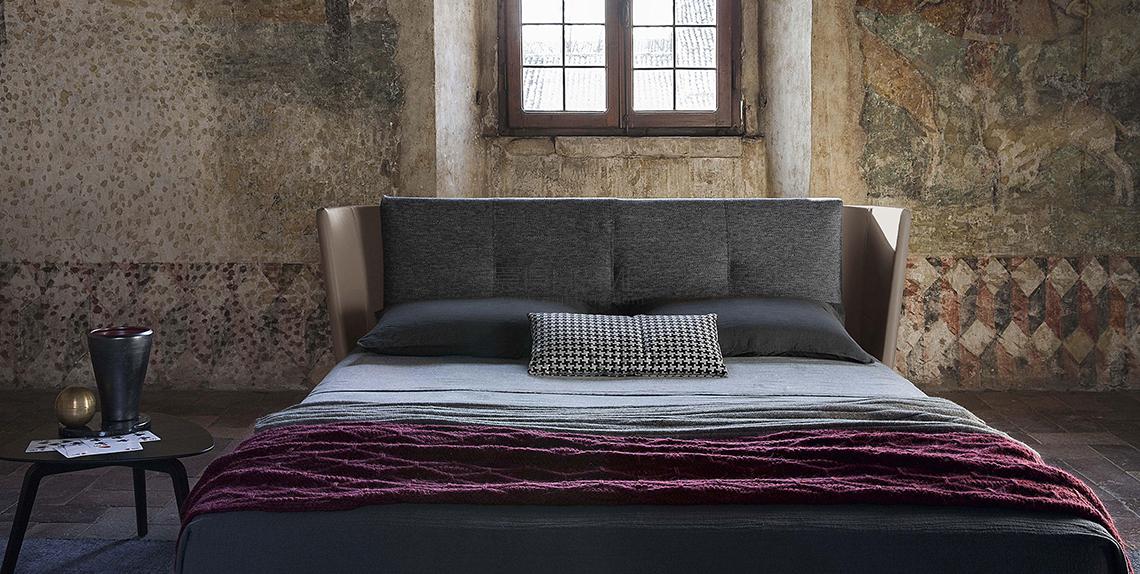 Bretagne床的縱向床梁式基座使用杉木條,床腳板使用楊木膠合板,填充聚氨酯泡沫。槍管色鋁支腳。床頭框架使用楊木、櫸木和北美鵝掌楸實(shí)木以及樺木膠合板。包墊中使用聚氨酯泡沫和聚酯棉。支撐靠墊使用聚氨酯泡沫和聚酯棉。通過拉鏈和粘扣條與床頭連接。Bretagne床外表使用典雅的裝飾效果,將床架和床頭上的Pelle Frau?軟皮與靠墊的可拆洗布藝相結(jié)合。此外,還有完全覆蓋軟皮的版本。