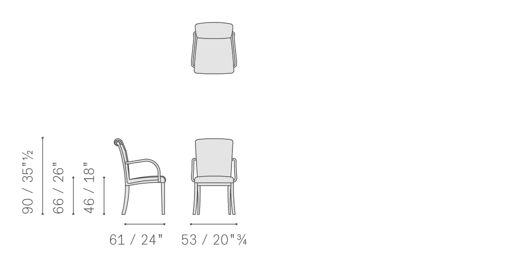 Vittoria系列包含三個款式:椅子、帶扶手的椅子(扶手由彎曲金屬管構成,覆蓋軟皮)、小扶手椅(實心扶手再次飾以特色渦形裝飾圖案)。所有版本結構均為櫸木實木,支腳為櫸木,裸木或櫻桃木色、核桃木色或雞翅木色。根據(jù)需要,也可提供額外的特殊表面處理。彈簧結構使用松緊帶,而包墊則填充聚氨酯泡沫。Vittoria小扶手椅和椅子可以覆蓋Pelle Frau?軟皮、Poltrona Frau布藝或客戶提供的布藝。