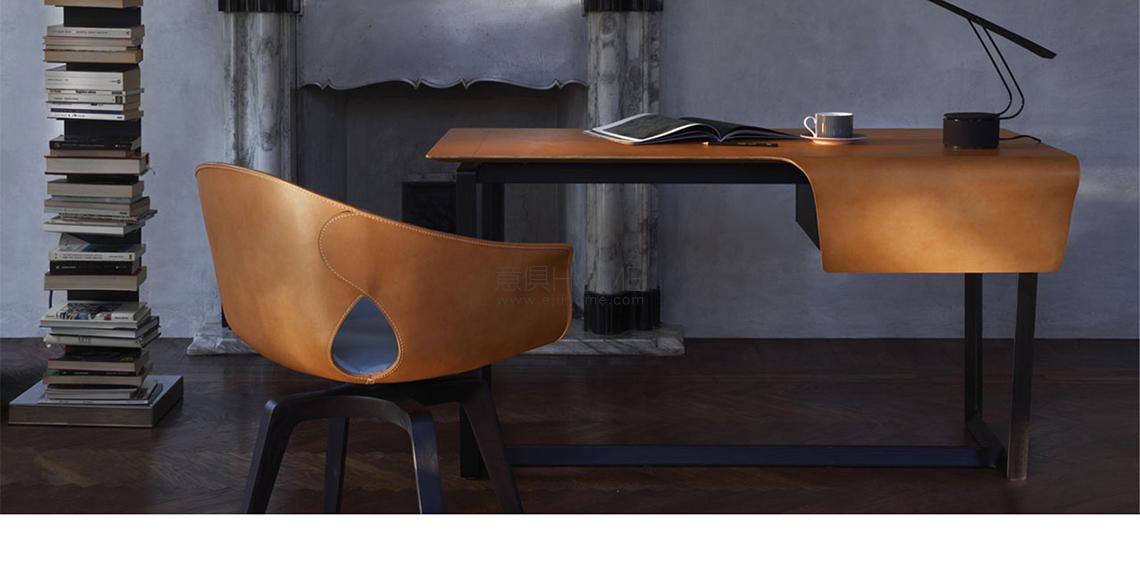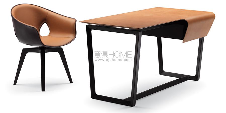 Fred寫字臺的設計是幾近空靈的輕盈幾何形狀的交匯。Roberto Lazzeroni設計的這款家具中,以細膩的鐫刻和手工冷印彰顯皮革連續表面的視覺愉悅感,打造精致的圖形裝飾。特殊手工工藝實現皮革前表面彎曲度,而無需內部支撐。Fred寫字臺的理想伴侶是Ginger座椅,令家庭書房更加完備、和諧。
