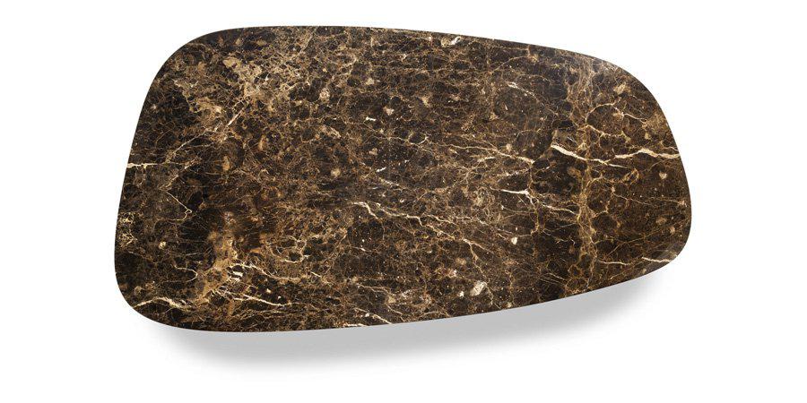 Jane餐桌桌面使用珍貴的Calacatta Oro(卡拉卡塔金)大理石、Emperador(金峰)大理石或新款Fior di Pesco(帕斯高灰)大理石(拋光或半拋光表面處理)。桌面下表面以技術(shù)網(wǎng)加固,確保堅(jiān)固性和穩(wěn)定性。支撐結(jié)構(gòu)由三個(gè)支柱構(gòu)成,每個(gè)支柱由三個(gè)元素組成:一個(gè)桌面固定片、一個(gè)中央木制主體、一個(gè)墊腳片。支撐結(jié)構(gòu)采用櫸木實(shí)木木芯,包裹在四片高密度纖維板板材中,使用模壓加工,嵌有摩卡色或雞翅木色梣木鑲片。