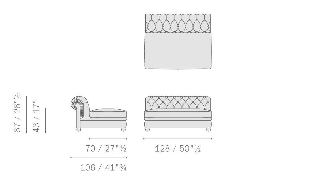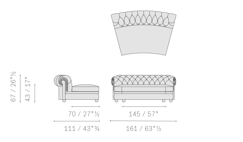 Chester Line沙發的支承結構采用陳年櫸木實木。坐墊、靠背和扶手處的彈簧結構使用手編雙錐形彈簧,架在黃麻帶上??勘澈头鍪职鼔|中填充手工塑形植物纖維。鵝絨坐墊中添加聚氨酯泡沫穩定內芯。Pelle Frau?皮面與Poltrona Frau布藝構成不同搭配組合。經典圓形版本的支腳使用深色胡桃木色或黑色漆光櫸木;高12厘米,使用深色胡桃木色或黑色漆光櫸木;櫸木表面覆蓋軟皮,與沙發覆面搭配,或使用鍍色效果拉絲鋁板。