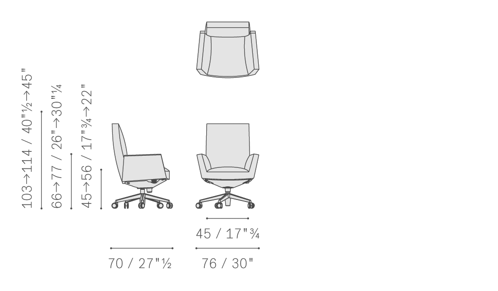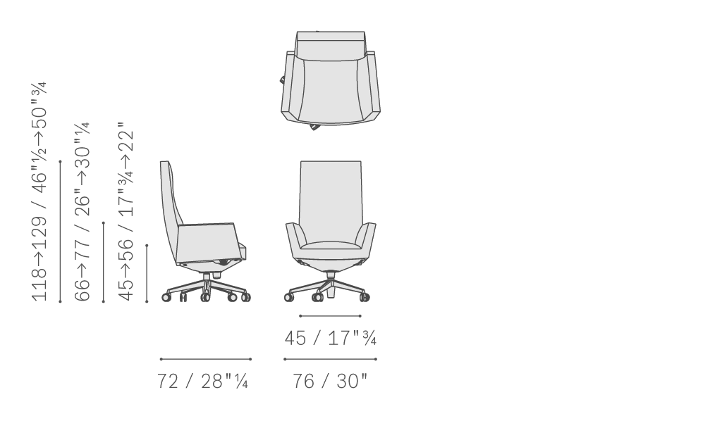 Chancellor President、Executive和Managerial版本可以調(diào)整高度并自動旋轉(zhuǎn),靠背和坐墊配備精巧的“Syncron”振蕩機械系統(tǒng),有5個連續(xù)的停留位置,從垂直到真正的躺椅位置。Chancellor Visitor扶手椅配有復(fù)雜的旋轉(zhuǎn)系統(tǒng),憑借推力滾珠軸承,允許扶手椅自動轉(zhuǎn)動,并回到初始位置。Chancellor扶手椅支承基座采用鍍鉻或深灰色噴漆鋼。President、Executive和Managerial版本五支腳底座帶有軟質(zhì)自鎖輪或滑軌,Visitor扶手椅四支腳底座帶有滑軌。扶手覆蓋軟皮,通過末端貼片固定在拋光或深灰色噴漆鋁制結(jié)構(gòu)上,與底座配合。覆蓋Pelle Frau?軟皮,如有可能,也可延伸至“Syncro”運動蓋板上。它是Chancellor Conference滑軌扶手椅系列的一員。