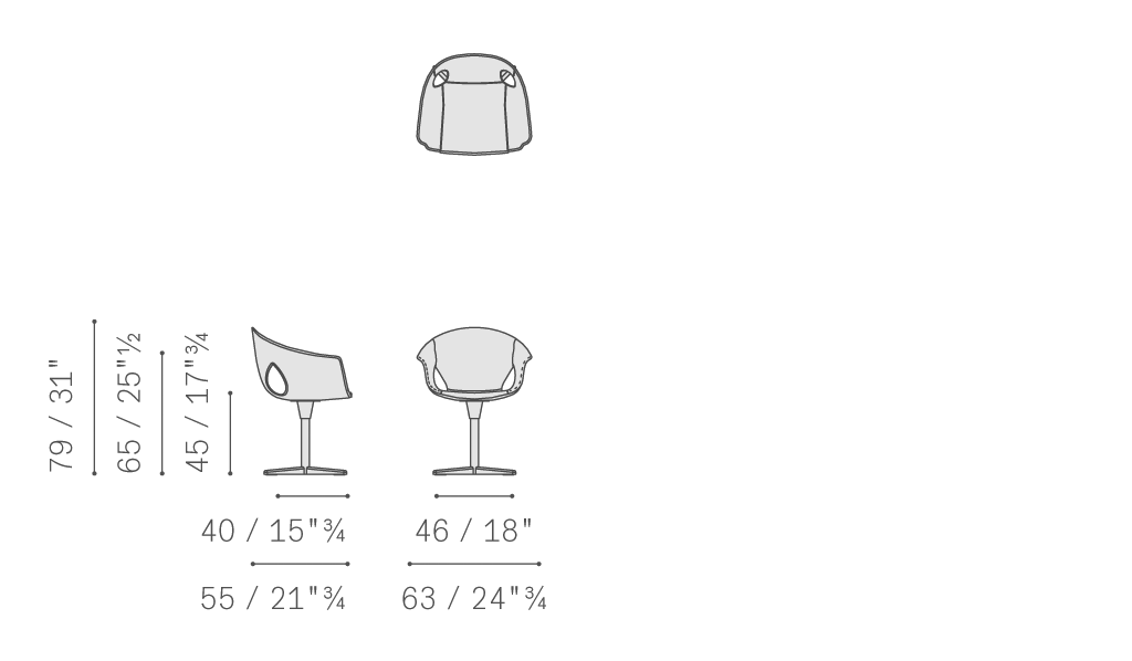 外部主體采用印壓合成熱塑聚合物,分為“煤灰”、“水泥”或“石膏”色。包墊填充聚氨酯泡沫,坐墊內表面覆蓋Pelle Frau?軟皮。Ginger Ale小扶手椅底座有四個基礎款型,表面處理噴涂與主體搭配的“煤灰”、“水泥 色,或鍍鉻。四支腳款具有金屬底座,由四條錐形支腳構成,配有塑料包頭或帶有小毛氈的可定向塑料包頭。四支爪底座采用鋼材制成,配備帶小毛氈的可定向塑料包頭。五支爪帶輪底座采用鋼材制成,分為固定高度360°旋轉款和座椅高度可調的空氣彈簧款。噴漆款的輪子支架采用黑色塑料 。支柱式底座款Ginger小扶手椅的底座采用鋼材制成,包頭為黑色塑料??梢詾楣潭ɑ蛐D版本,帶有緩沖裝置,自動回到初始點。