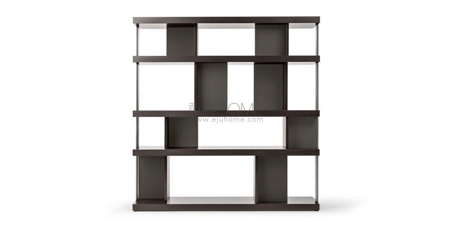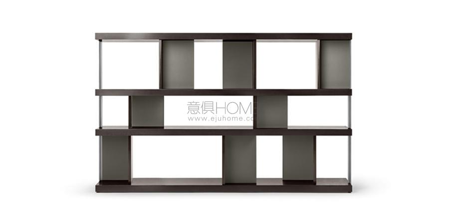 Jobs Bookcase系列源自Rodolfo Dordoni對新科技相關行為發展的專注研究,以及材料的精心篩選:軟皮、拋光和啞光木材鋼質軋光結構,以穩重精簡的色調裝飾不同輪廓,并定義全新工作區域。Jobs Bookcase低柜和高柜既是收納柜,也是書柜,外露隔槽、架板和帶門板的隔槽組合而成。既可以沿墻壁擺放,也可以置于房間中央,還可以用于界定、劃分、組織空間。依據垂直元素和隔斷的布置,分為兩種類型,在沿墻壁擺放的版本中,均更加靠后,有助于優化空間。