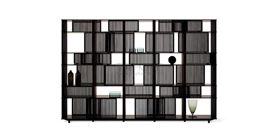 Jean-Marie Massaud為Lloyd收納柜和書柜設(shè)計(jì)了一套靈活的幾何系統(tǒng)。纖細(xì)的垂直木片構(gòu)成輕盈的格柵,可以沿隱形水平軌道全長滑動(dòng)。每個(gè)格柵均可根據(jù)喜好移動(dòng),構(gòu)成多變的序列。虛與實(shí)、明與暗相互結(jié)合勾勒出的多變圖譜。透過這樣的感性組合,可以瞥見放在柜子中的書籍和物品,但不會(huì)展現(xiàn)全部。最先進(jìn)的技術(shù)與木材和皮革傳統(tǒng)材料相結(jié)合,帶來堅(jiān)實(shí)而簡約的結(jié)構(gòu)。