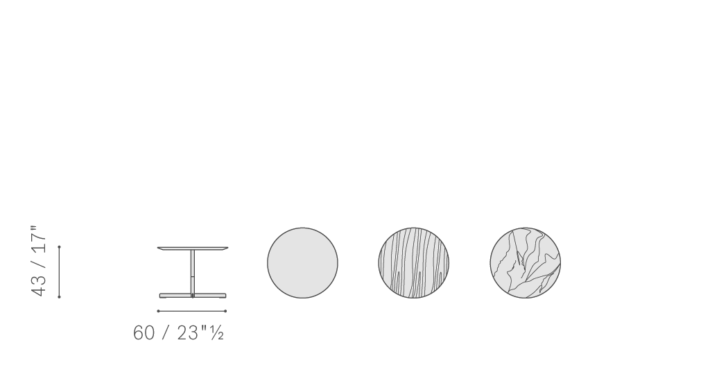 Bob咖啡桌采用鋼制底座,可以選擇槍管色、鍍釕、鍍色磨砂表面處理,或者選擇黑胡桃木底座(后者僅可搭配軟皮或大理石桌面版本)。桌面可以選擇Pelle Frau?軟皮、鑲貼黑核桃木的樺木膠合板、Emperador(金峰)大理石或Calacatta Oro(卡拉卡塔金)大理石(拋光或半拋光)(直徑110型號(hào)除外)。支腳上部分總是采用與桌面一樣的表面處理。大理石桌面版本在支腳上部分表面覆層方面可以選擇搭配色軟皮。