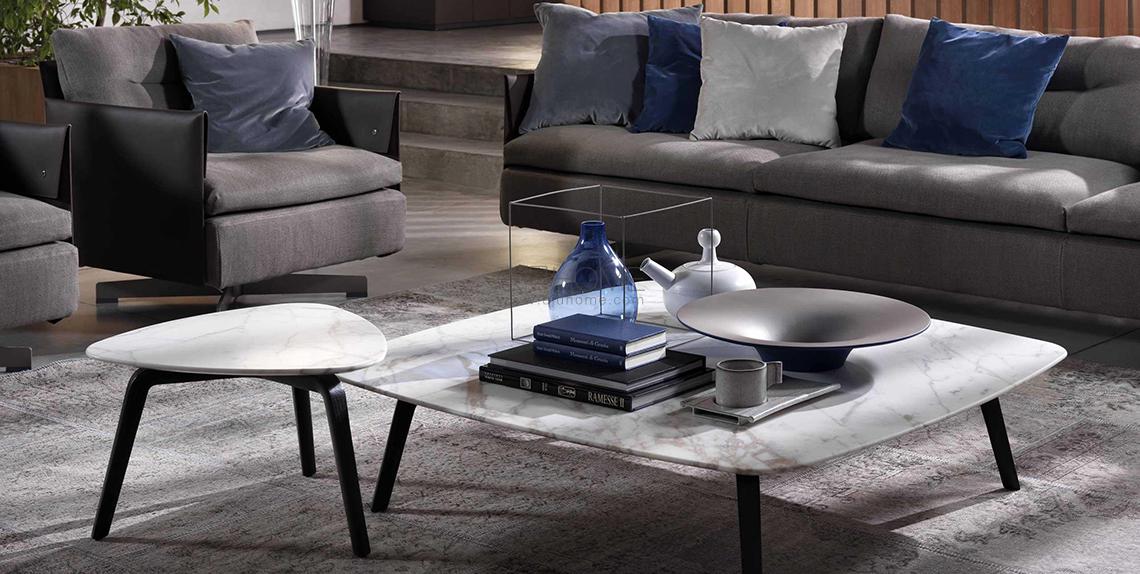 Roberto Lazzeroni設計了一款長方形、兩款三角形、三款正方形咖啡桌,其中一款有兩個支撐桌面。這就是Fiorile咖啡桌:磨圓邊角帶來的柔軟、協(xié)調的形狀,各自不同,自由銜接,每次都能構成前所未有的幾何組合。Fiorile桌面也因高度不同而錯落有致,為空間帶來動感和典雅。