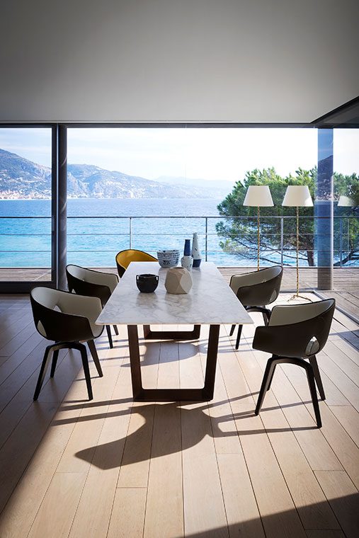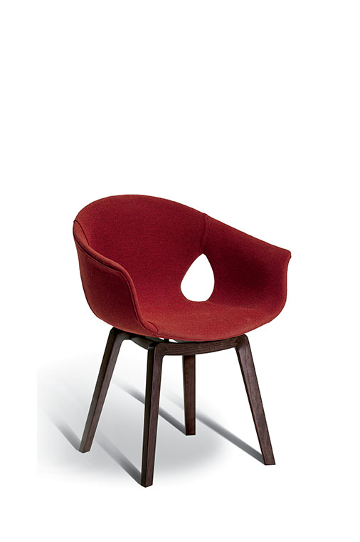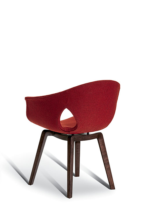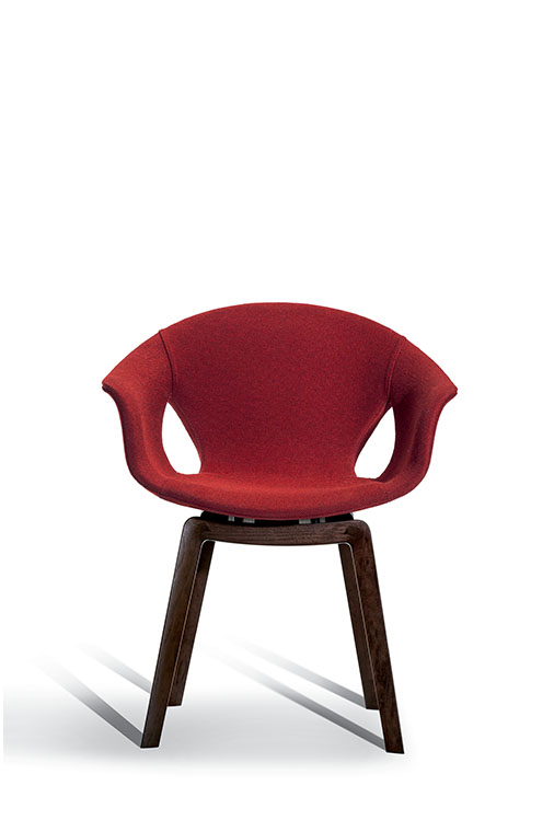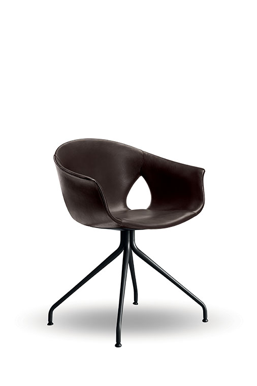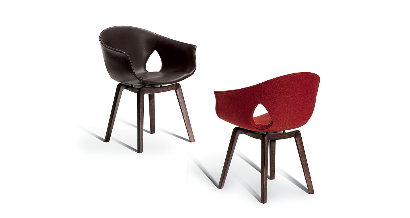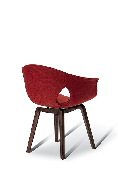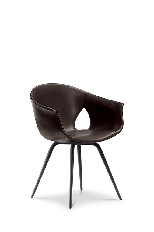 Ginger小扶手椅主體采用印壓成型合成熱塑聚酯。主體與基座之間的固定通過黑漆鋼支架實現(xiàn)。旋轉(zhuǎn)版本中,可以旋轉(zhuǎn)360°并回到初始位置。包墊采用聚氨酯泡沫。Ginger外部覆蓋厚度4毫米的無接縫Cuoio Saddle皮革或Saddle Extra皮革。內(nèi)部覆蓋Pelle Frau?軟皮,具有令人喜愛的材質(zhì)對比。四支腿底座使用雞翅木色或摩卡色梣木實木,具有三角形截面。