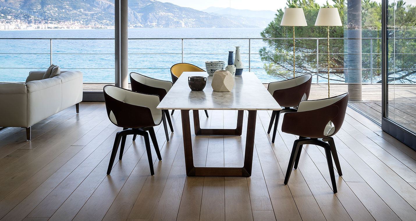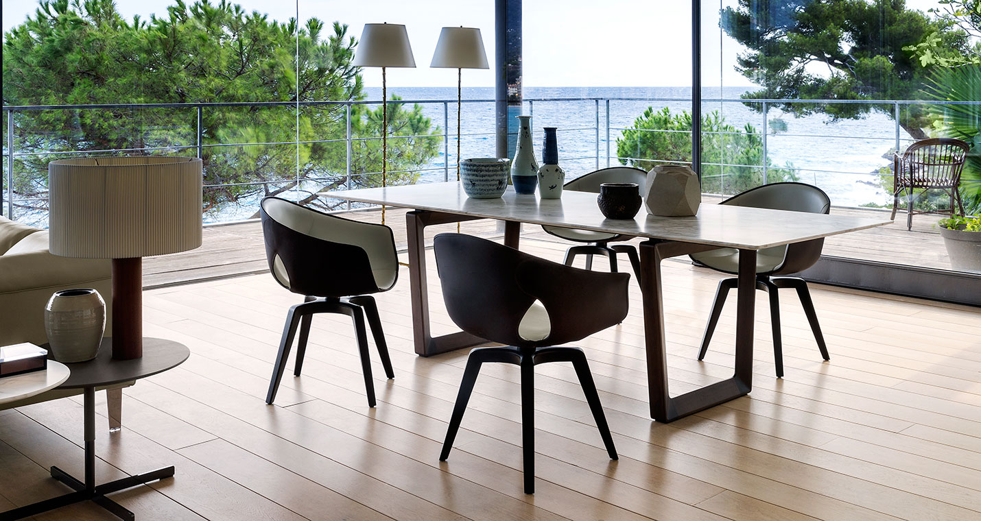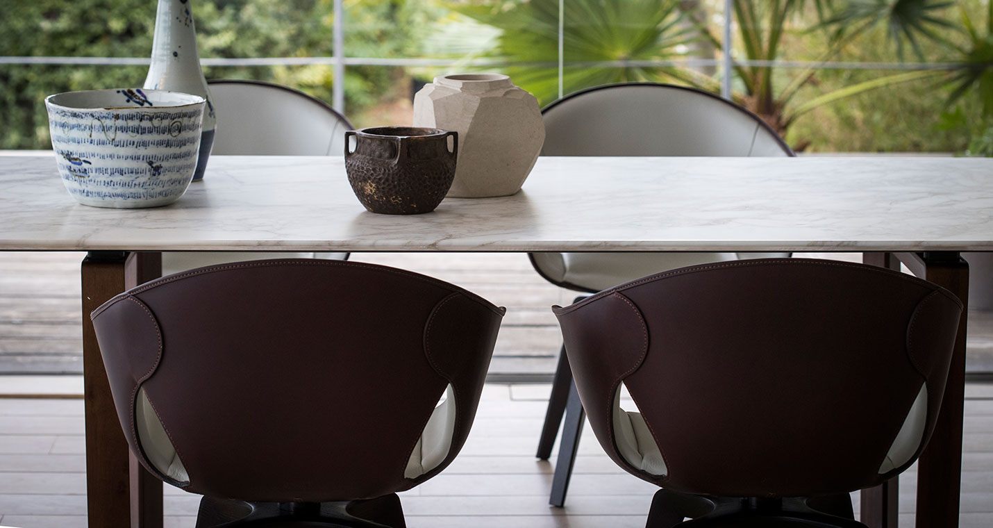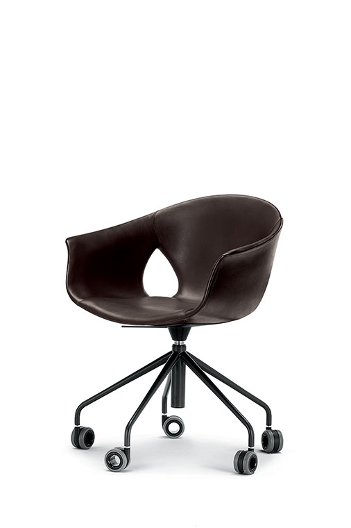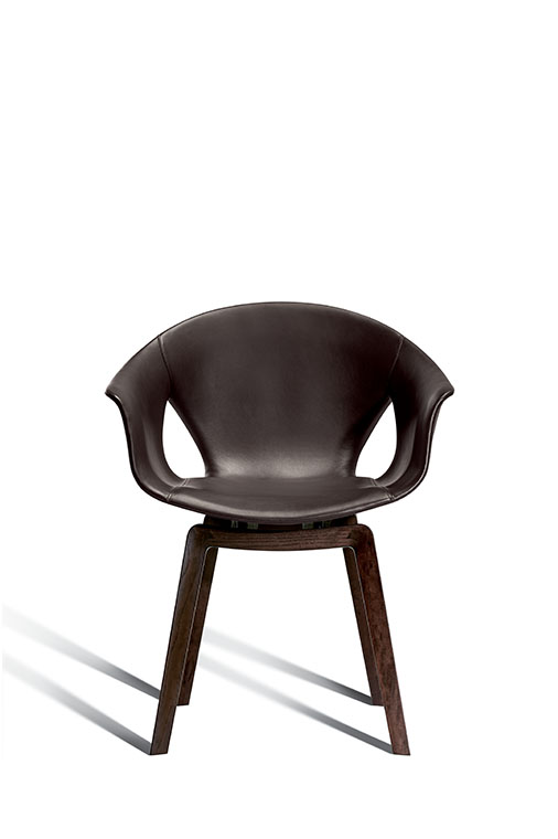 在設(shè)計Ginger小扶手椅時,Roberto Lazzeroni帶來一款精致、簡單的座椅。由皮革和軟皮構(gòu)成的鳥巢狀外殼,精簡、舒適。Ginger小扶手椅具有包容和保護感,裝飾典雅針腳,沿整個外周延伸。Ginger的設(shè)計初衷不僅是成為Fred寫字臺的天然伴侶,也可作為獨立座椅,旋轉(zhuǎn)版本完美適合書房,固定版本完美適合起居室餐桌。