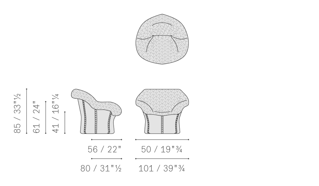 Juliet扶手椅是Poltrona Frau的百年標志,是該公司在百年慶典設計比賽時從來自世界各地的十二名杰出設計師中選出的獲獎作品。通過Juliet,Benjamin Hubert以當代視角重新詮釋經典纓球包墊,柔軟、自由、內部增添原創縮褶縫線,好似女士緊身背心和袖子的蕾絲與散褶,以多面圖案為表面帶來靈動。Juliet扶手椅源自傳統木框架,底座更窄,座椅處呈泡芙狀散開。褶皺和縫線之間的自由組合所塑造的豐富表面覆層帶來放松和縱情之感。