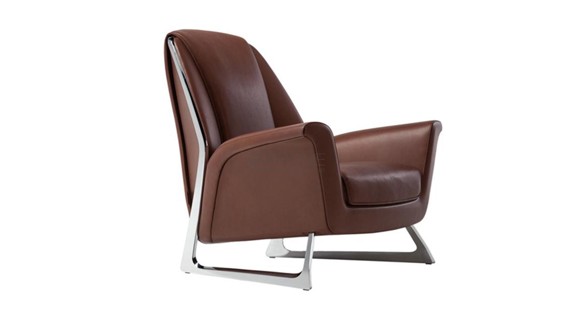 Luft扶手椅采用繁復、精致的技術結構,注重每一個細節,使用印模硬質聚氨酯、聚氨酯泡沫和聚酯棉等不同材料。支腳采用噴漆壓鑄鋁,分為灰色和鋁金屬色。此外還有鍍鉻金屬可選。Pelle Frau?軟皮搭配同色深淺縫線,強調扶手椅的柔軟與舒適感,可以配備相同材料的Luft圓沙發凳。