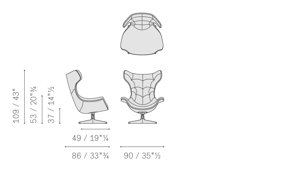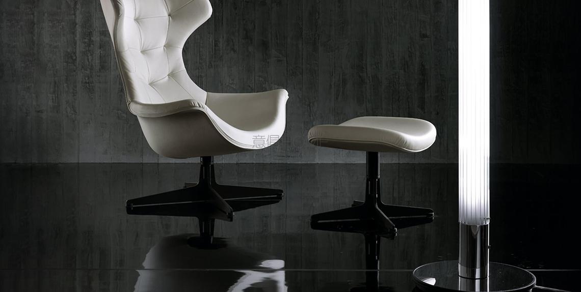 Regina II旋轉扶手椅是經典高背沙發的當代詮釋。Regina II由Paolo Rizzatto設計,具有流動且符合空氣動力學的線條,視覺上非常輕盈,同時保留極為寬大包容的坐墊。靠背纓球包墊加工為表面帶來動感,體現虛實結合技法,與橢圓形側面的婉約形狀保持一致。經典Regina II圓沙發凳是這款超級舒適座椅的完美搭配。