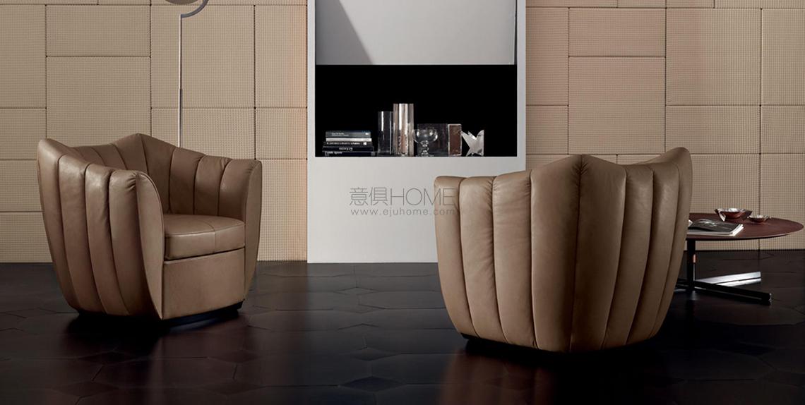 Poltrona Frau向Guglielmo Ulrich致敬,再版其1937年設(shè)計的半圓靠背小扶手椅。此次重新命名取自這位著名建筑師兼室內(nèi)設(shè)計師的外號,他曾為米蘭眾多大資產(chǎn)階級的宅邸提供室內(nèi)設(shè)計。Willy扶手椅在對外形和幾何結(jié)構(gòu)的精湛控制中,融合了Ulrich特立獨行的迥異風格。其特色在于細膩渾圓的線條和包容舒適的坐墊。珍貴的菱形縫線突出靠背表面,創(chuàng)造沉穩(wěn)而精致的裝飾。