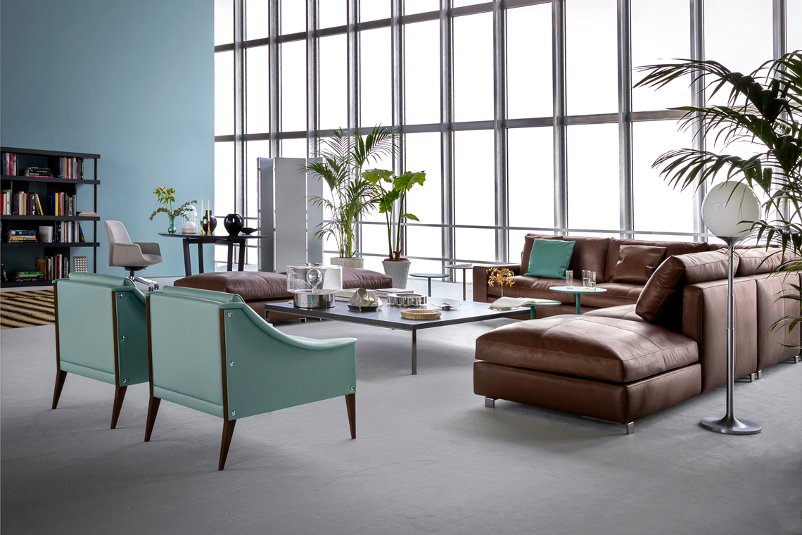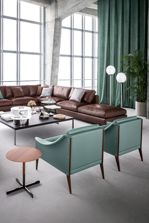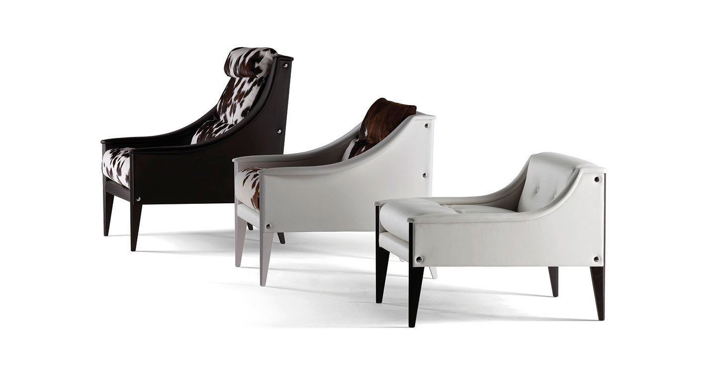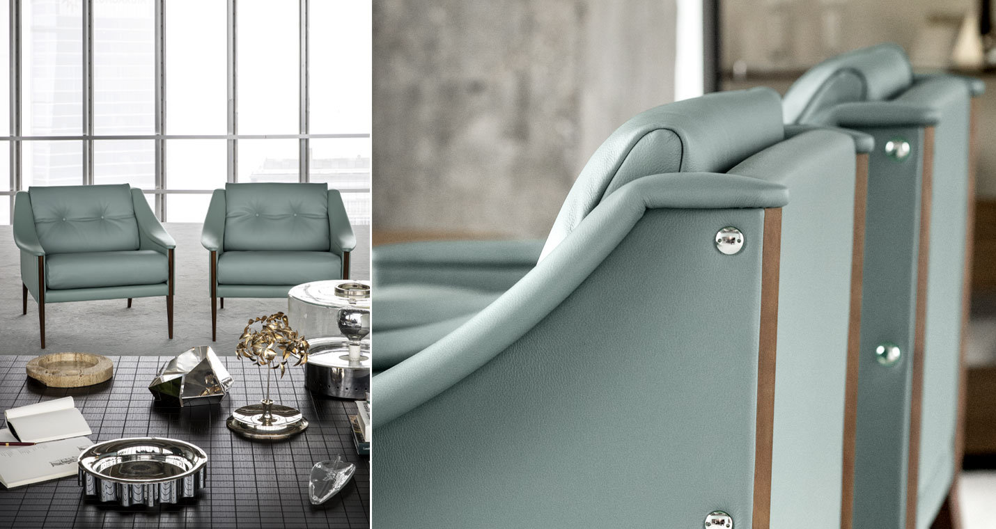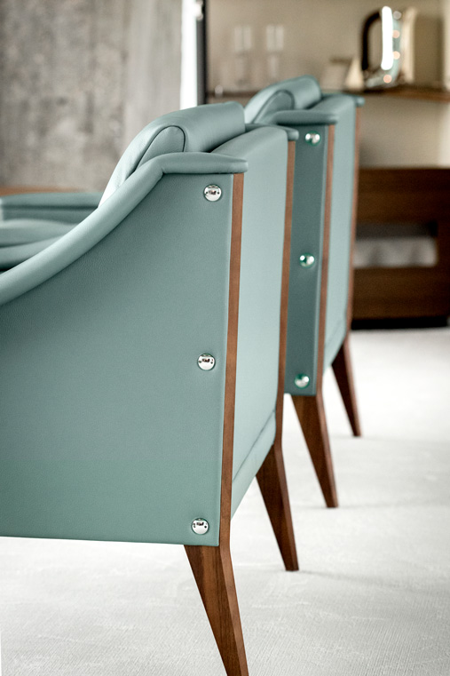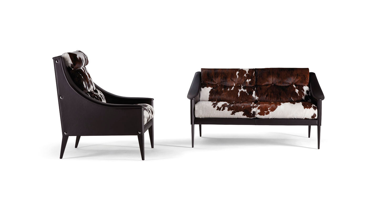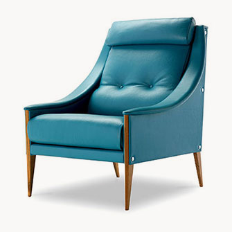 支撐結(jié)構(gòu)采用陳年櫸木。12號扶手椅采用纖細(xì)扶手,可以將兩個或多個組合在一起。48號扶手椅配有填充鵝絨的頭枕,與靠背結(jié)合在一起。表面完全覆蓋Pelle Frau?軟皮,或者主體使用Pelle Frau?軟皮,坐墊和靠背靠墊使用Cavallino。支腳可以選擇多種表面處理:除了黑色或白色漆繪木之外,還可以選擇Ponti天藍(lán)色或Ponti綠色,或者黑核桃木。