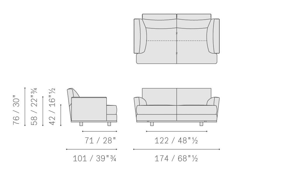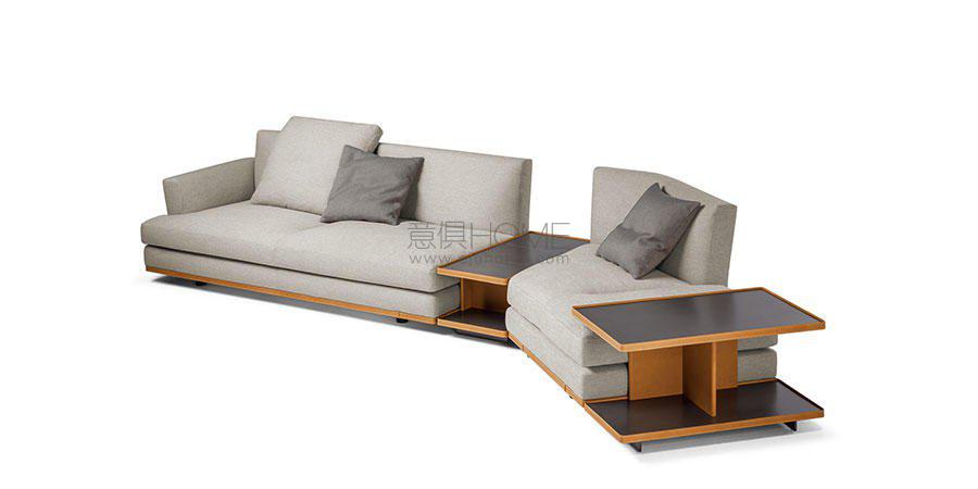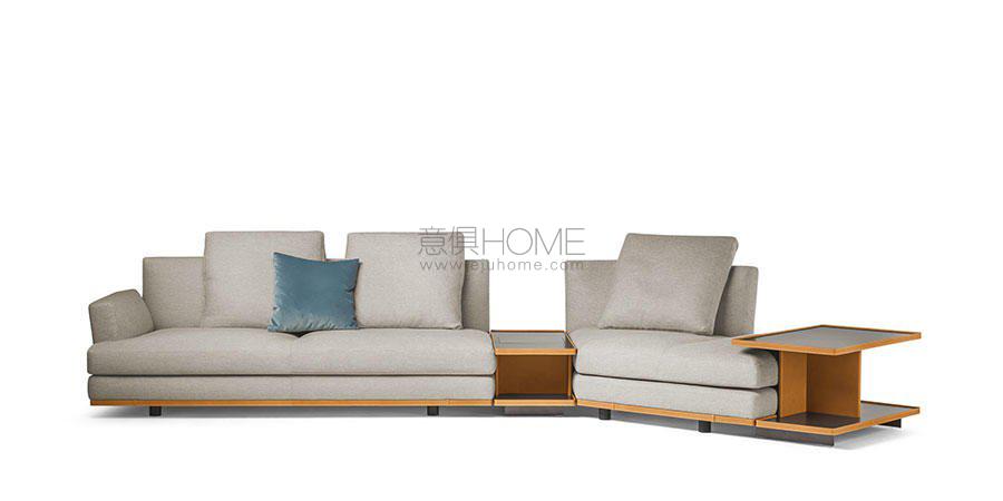 Come Together沙發系統表面覆蓋Pelle Frau?皮革或布藝。為了強調團結感,沙發整個下沿可點綴一條Cuoio Saddle或Cuoio Saddle Extra鞣制皮條,裝飾袢帶,好似腰帶和小皮具。無皮條版本突出設計的輕盈感。針腳在扶手表面塑造出細膩和諧的圖案。支腳可以選擇黑色陽極處理鋁制圓柱結構,或者鍍色磨砂鋼片狀結構,后者也可使用鍍釕表面處理。
