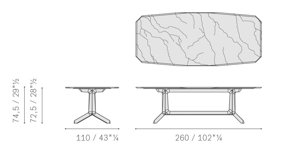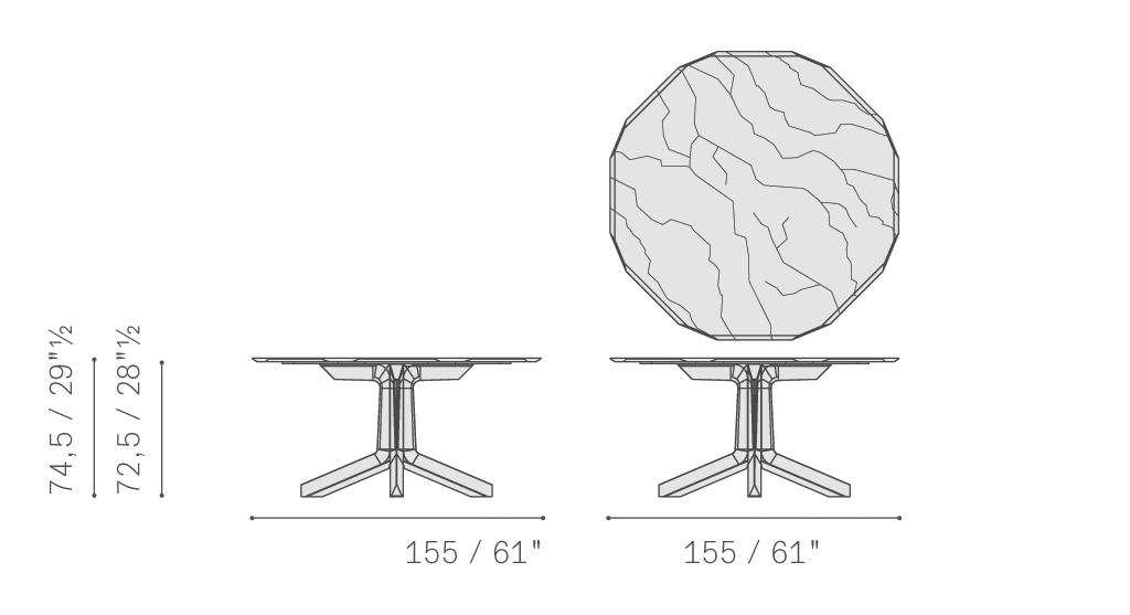 摩卡色或雞翅木色白蠟木實木支撐具有幾何雕塑的效果。相反,無論是圓形版本還是長方形版本,頂面均彎曲而柔軟。Othello桌臺的獨到特點在于其木制結構,邊緣截面呈三角形,與尖角相結合,沿臺面四周,呼應鉆石切割工藝。Poltrona Frau為頂面提供兩種材質款式選擇。煙熏色水晶玻璃臺面輕盈且半透明,彰顯支撐構造的堅實。帕斯高灰大理石是極為珍貴的品種,細膩而豐富的紋理令人無法移開視線,在自然光下展露透光和幾乎透明的區域?;蛘?,也可以使用同樣珍貴的卡拉卡塔金色大理石。水晶玻璃版本的Othello桌臺搭配拉絲不銹鋼外露隔片。大理石版本可以使用拋光或半拋光表面處理,臺面下表面以技術網層加固,確保經久耐用。頂面由層壓HPL倍耐板墊板支撐。