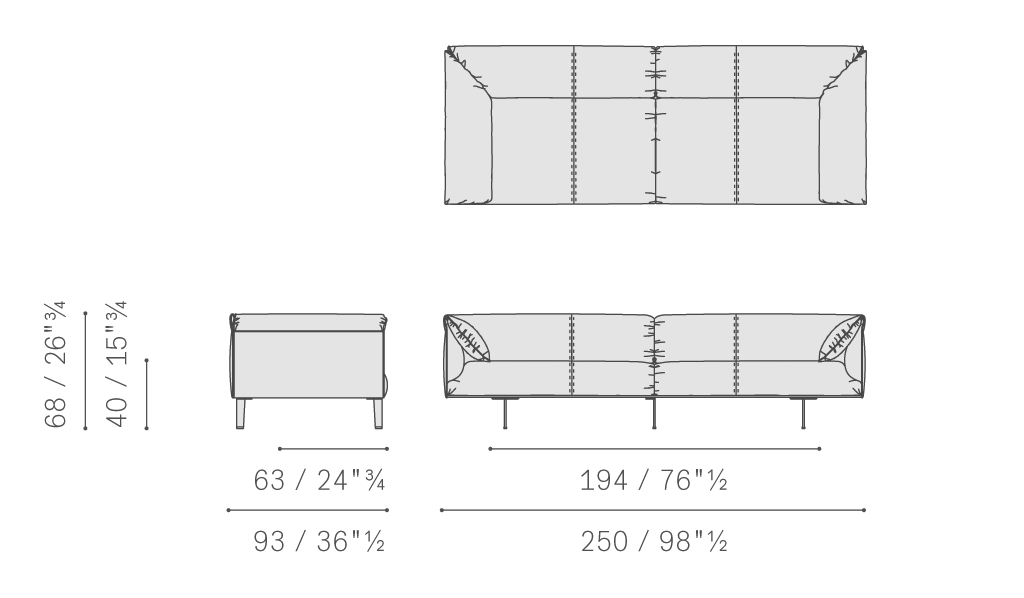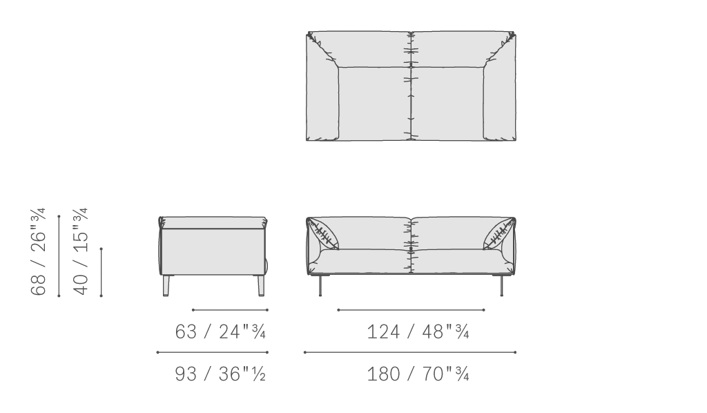 John-John沙發(fā)使用櫸木實木結(jié)構(gòu),配有鐵質(zhì)中心橫撐。靠背和扶手帶有聚氨酯泡沫和聚酯棉包墊,使用櫸木和楊木實木以及楊木和樺木膠合板貼面。靠墊中填充松軟鵝絨,后側(cè)覆蓋Pelle Frau?微孔軟皮,貼合身體移動,強(qiáng)調(diào)坐墊的柔軟、舒適之感。座墊彈簧結(jié)構(gòu)使用松緊帶。鍍釕鋁制支腳配有透明金屬材質(zhì)的支腳防護(hù)。
