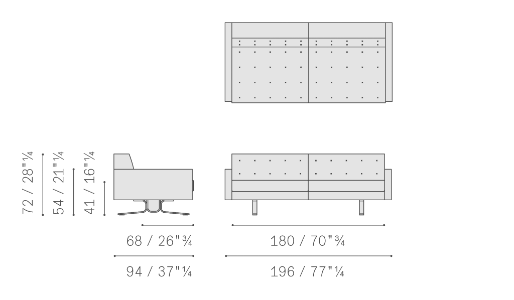 Kennedee沙發的特點在于靠背和靠墊上的輕盈絎縫,是Poltrona Frau歷史工藝技能的完美表達。精致的X圖案以對比色縫線手工制作。座墊結構使用陳年櫸木實木,靠背和扶手結構則使用陳年櫸木以及中密度纖維板。靠背、扶手、靠墊和圓沙發凳包墊填充聚氨酯泡沫和聚酯棉。彈簧結構使用松緊帶。槍管色表面處理拉絲鋼支腳。