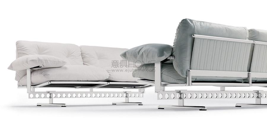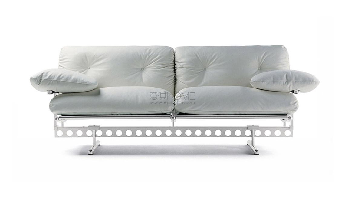 Ouverture原創(chuàng)且具有鮮明個性,是由Pierluigi Cerri于80年代初設(shè)計的一款沙發(fā)。作為試圖帶來家具革命、具有鮮明技術(shù)品味的典范原型,Ouverture彰顯工業(yè)和大都會風(fēng)范。鋼制穿孔橫撐擔(dān)任這一座椅和桌子系統(tǒng)的主角,作為支撐結(jié)構(gòu),容納柔軟的鵝絨包墊。