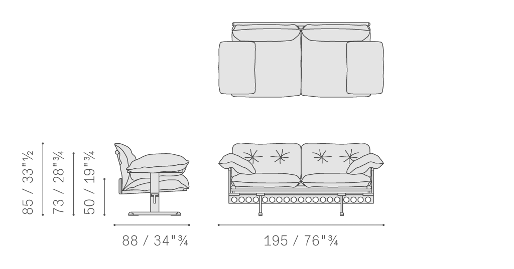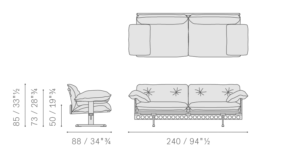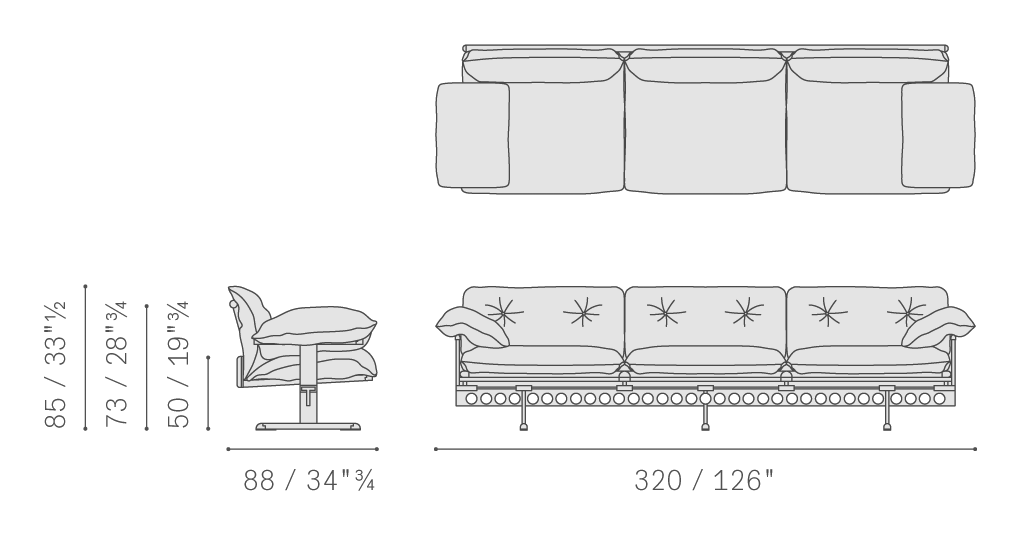 Ouverture沙發(fā)主體采用金屬鋁灰色漆鋼板材制作,由漆鋼橫撐支撐,與結(jié)構(gòu)其它部分一樣。支腳沿橫撐排列,相對位置可靈活調(diào)整。座椅彈簧系統(tǒng)采用彈性懸掛。座椅、靠背和扶手靠墊使用鵝絨,添加聚氨酯泡沫穩(wěn)定嵌塊。桌面可以采用汞拋光黑色花崗巖、磨砂浮法玻璃或聚酯拋光板巖。沙發(fā)表面覆蓋Pelle Frau?軟皮或布藝。