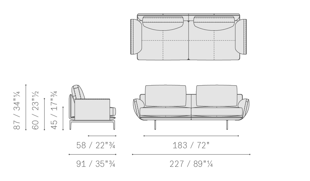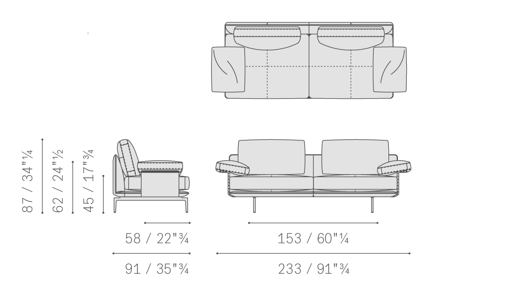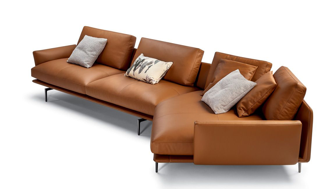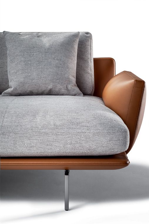 Get Back表面看來休閑肆意,卻隱藏著對細節的絕對關注。座板和靠背匯聚成一個極為輕盈的元素,周圍一圈極細滾邊,好似鉛筆痕跡,包圍整個輪廓。圓角令表面更具吸引力,皮革扶手裝飾珍貴縫線細節,從側面環抱座板,強調柔軟形狀。