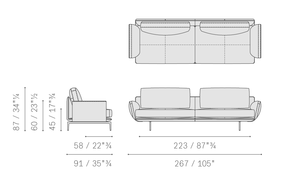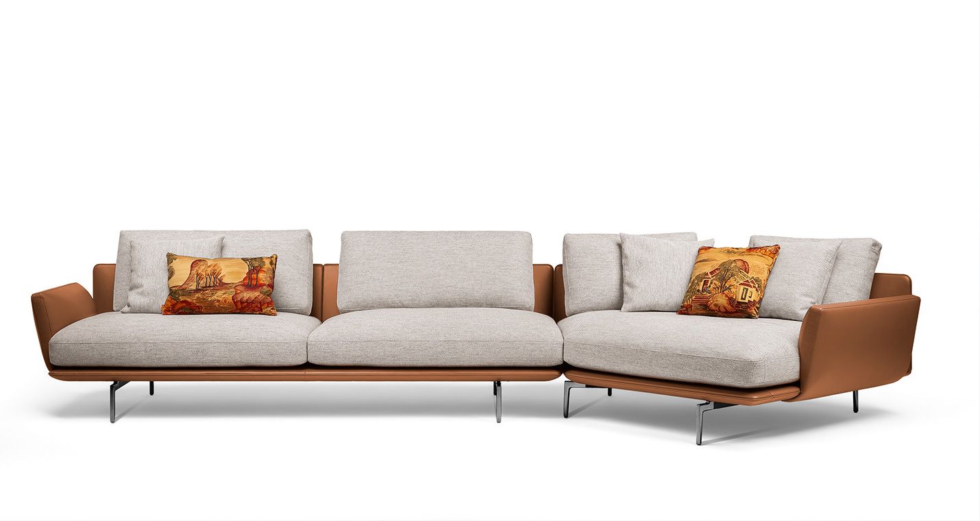 Get Back沙發誕生于對舒適性的深入研究。豪爽、寬大、開放的線條,令人放松的傾斜靠背,兩種不同類型的扶手,多個自由拼搭組合元素,構成多種不同配置。采用懸掛式結構,僅由簡單的鋁支腳支撐,整體效果極為輕盈。支撐結構上放有獨立軟墊,形成縱深出乎意料的半島。令人無法抗拒的“回家”呼喚,在起居室享受休息和社交。
