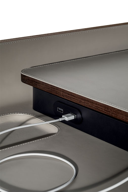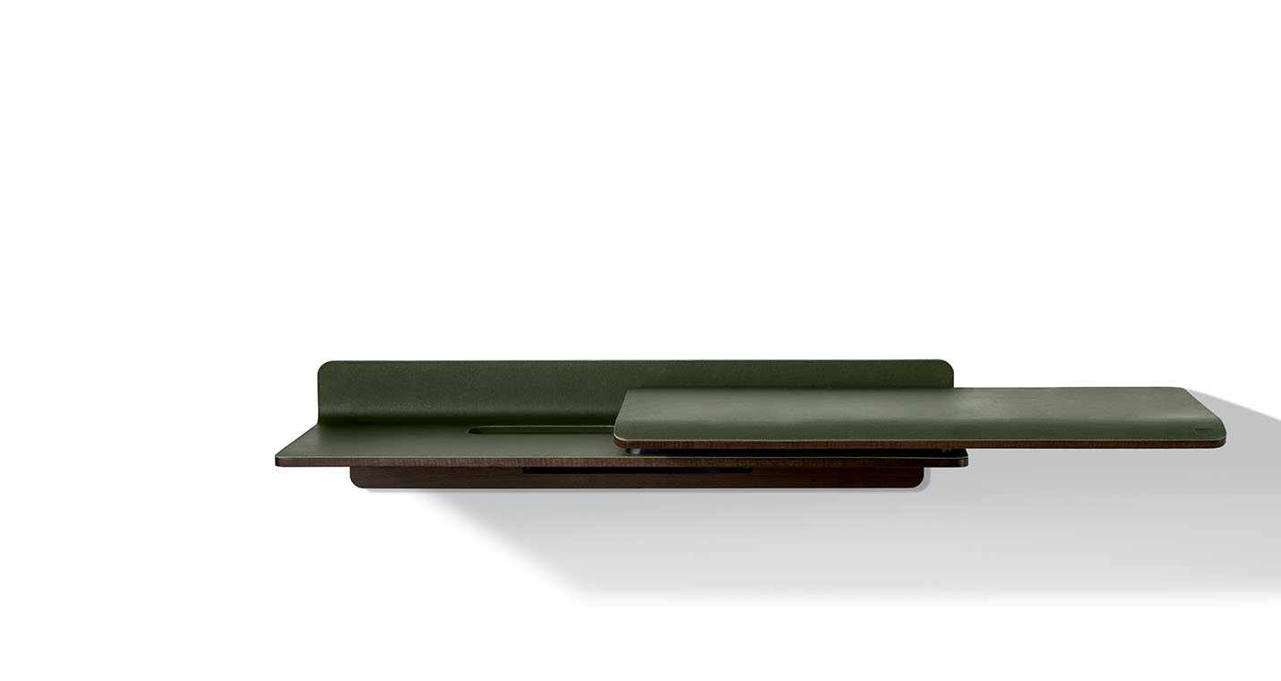 在日本書法界,點、線、字之間存在一種無形但有意識的連續性,被稱為“iren”(意連)。姿態間的這些連續性意味著,儘管似乎彼此分離,但彼此間卻完美和諧。即使在我們這個由技術主導的時代,Iren寫字臺的精髓不僅在于對美感和精簡的追求,更是為了恢復自然而和諧的姿態:這款寫字臺為工作中的新場景與新習慣賦予生命,符合身體與物品之間的自然流暢關係。設計師大城健作將Iren寫字臺想像成一個小型家用工作臺,能夠輕鬆適應現代生活方式。只需簡單操作,便可讓兩個重疊檯面中的一個在另一個之上滑動,從而帶來新的工作和容納空間。電子連接毫不影響寫字臺的美觀:充電和USB插座位于黑色金屬盒中,盒上是上層檯面,表面由優雅的軟皮或硬皮覆蓋。上層隔層板略微傾斜,帶來更加柔和的感覺,并能夠為前臂提供更好的支撐。對于壁掛式,可在背面安裝LED照明燈,以便在環境光線不足時也能更好使用寫字臺。