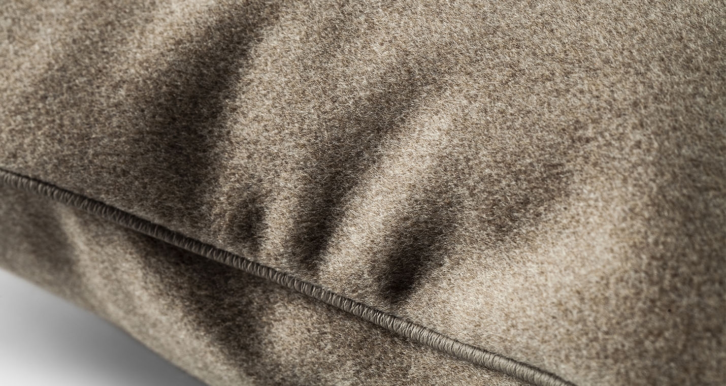 Loro Piana Interiors裝飾軟墊採用Altai和Zelander? Check面料包覆。}Altai是一種羊毛和羊絨的精製混紡面料,將兩種纖維的特性完美融合。一方面,極為細(xì)膩的羊絨具有非凡的柔軟性,另一方面,精心挑選的僅產(chǎn)自澳大利亞和紐西蘭的美利奴羊毛,則具有出色的強(qiáng)韌性和保暖性。在經(jīng)典的Check設(shè)計(jì)中,Zelander?採用優(yōu)質(zhì)紐西蘭美利奴羊毛加工而成,具有出色的光澤和強(qiáng)韌性。其低調(diào)的優(yōu)雅氣息為軟墊賦予豐富的精美感。如同所有羊毛,自然具有阻燃性。