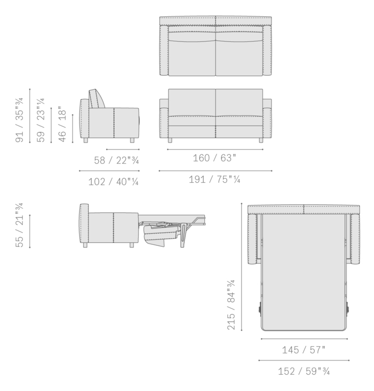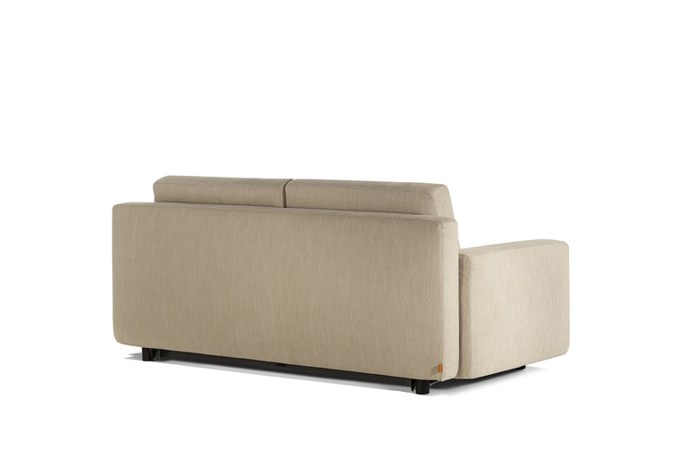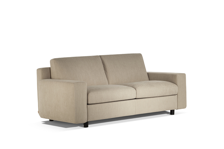 The sofa-bed is integrated within the large modular sofa system that makes simplicity and minimalism its strong point. The technical opening mechanism is not visible because it is completely hidden in the structure, making the sofa bed visually identical to the large two-seater version.