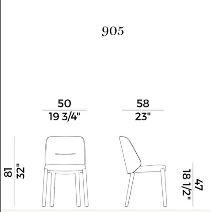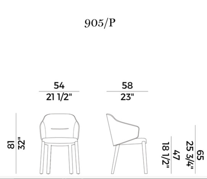 A distinctive feature of the Concha chair, proposed with or without armrests, is the enveloping, slightly inclined backrest, whose shape has inspired its name.