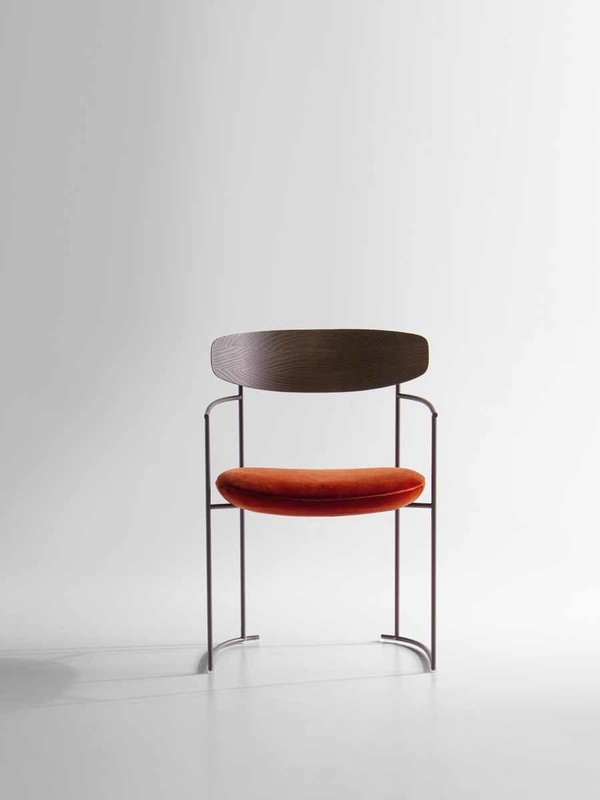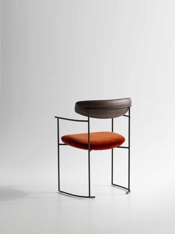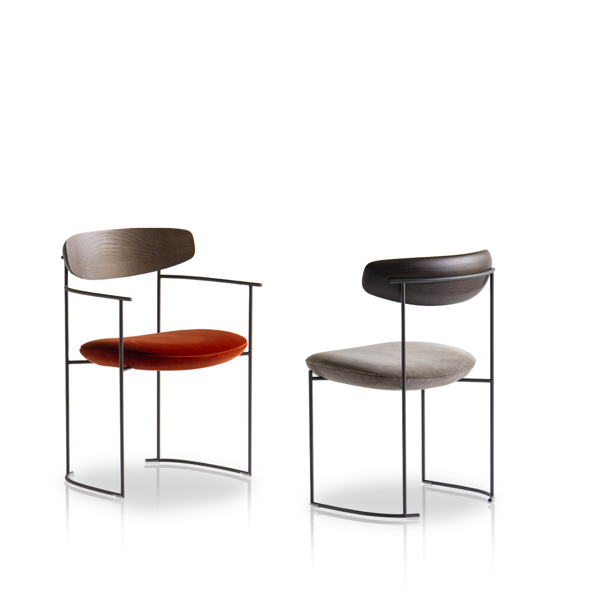 Keel chair and small armchair were born from the research between geometric rigor and organic sinuosity.