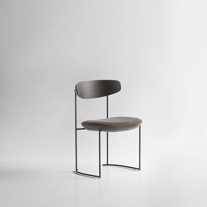 Keel, name recalling the nautical world, represents the attempt to find equilibrium between the linear structure in embossed metal rod and the sinuous and soft lines of the backing elements in solid ash wood, presenting a very particular processing.