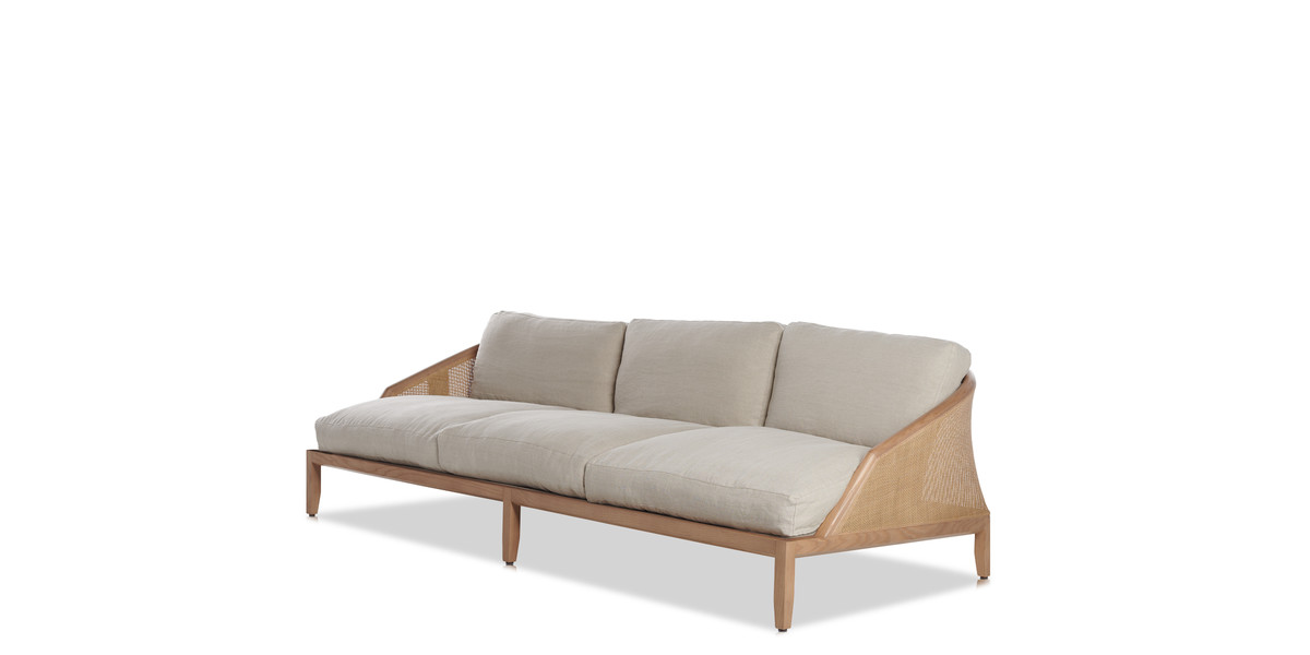 With a solid brushed ash wood structure and a wrap-around cane backrest, the Grace sofa expresses warmth, elegance and craftsmanship.