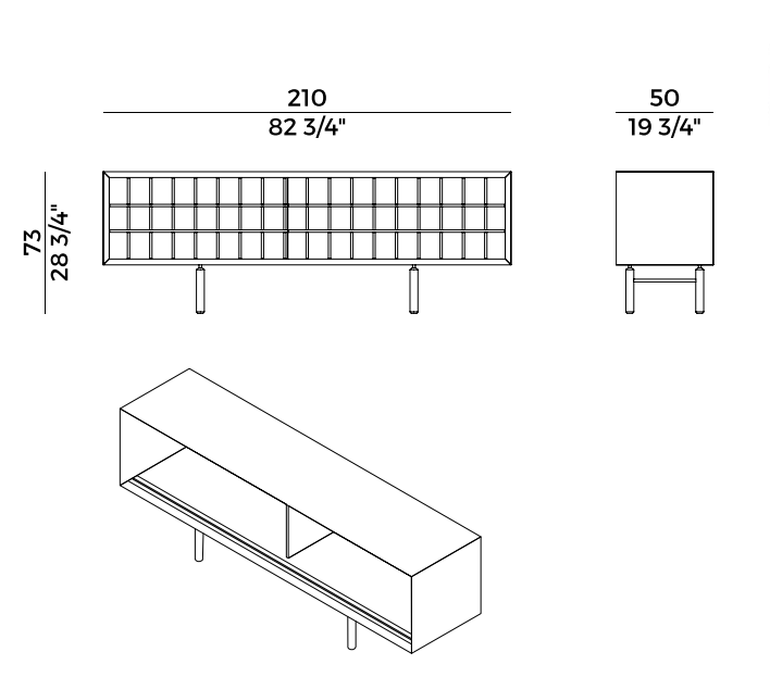 Family of containers composed of sideboard and cabinet, Sen is inspired by the design of the traditional Japanese doors in rice paper.
