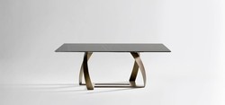The design with intertwined bands of the metal base is the element that characterizes the Bon Bon tables and coffee tables’ family.