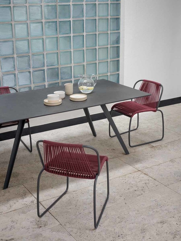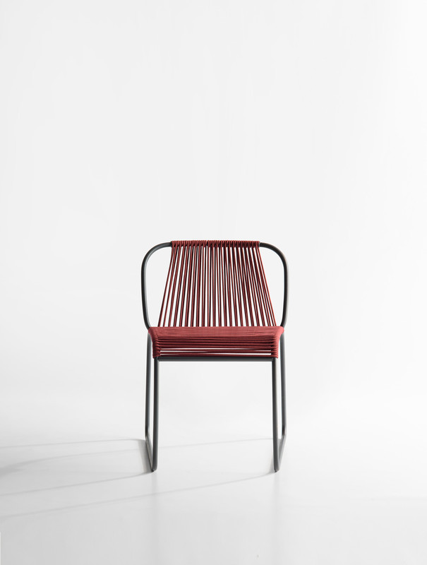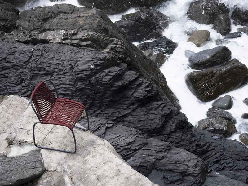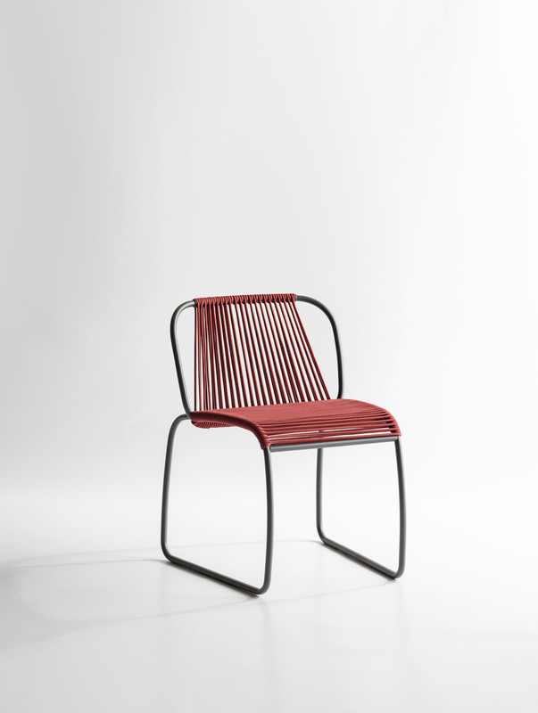 Epoxy powder-coated steel structure with an entirely hand-woven seat.