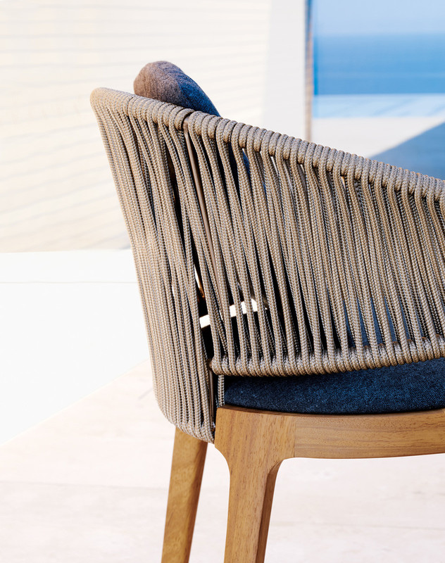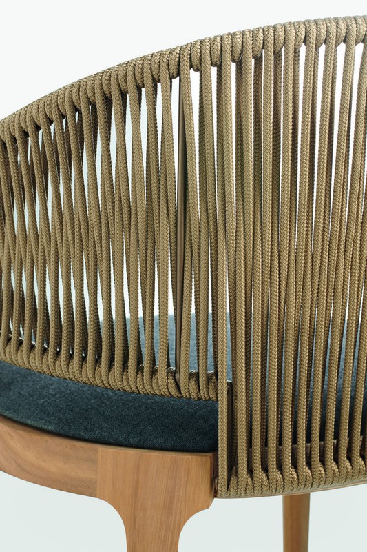 Characterized by a slender frame in painted metal tube with sled-shaped legs, and weaving in nautical or PVC rope, the Vela stools are proposed in two different heights, making them suitable for multiple contexts.