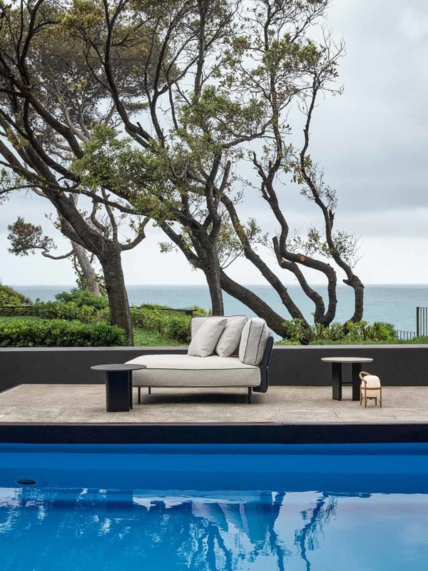 Connection between the bases in painted black metal and top in laminated porcelain or in light grey natural stone.