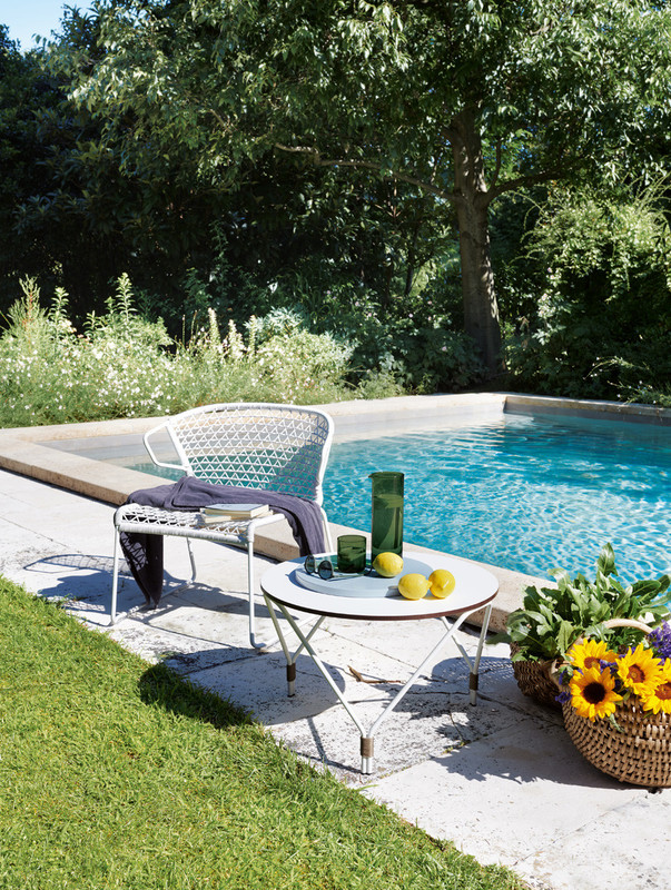 The structure of these tables is as simple as it is distinctive: the three thin metal tubulars of the legs, embellished by the hand woven rope around the meeting points between them, form a visual intersection that changes with the point of view.