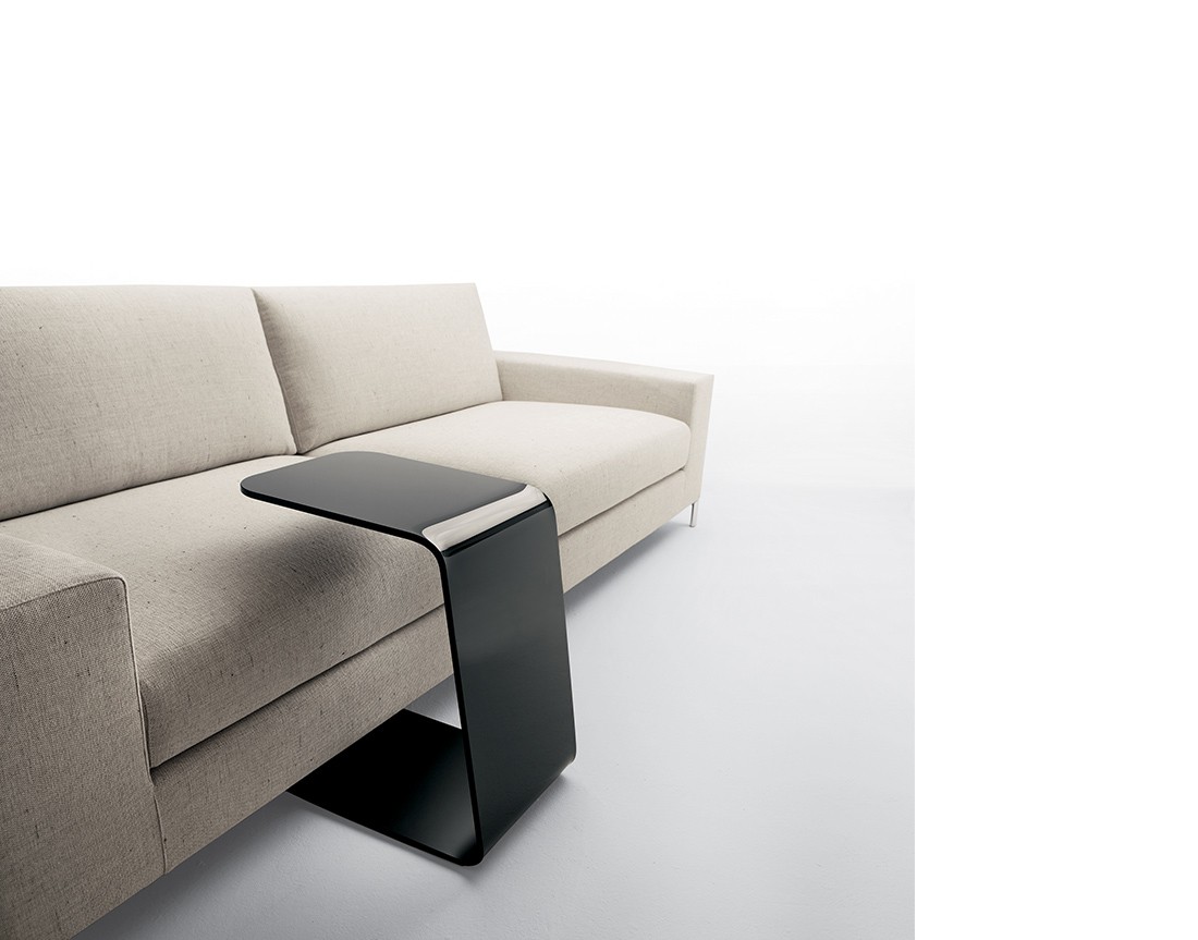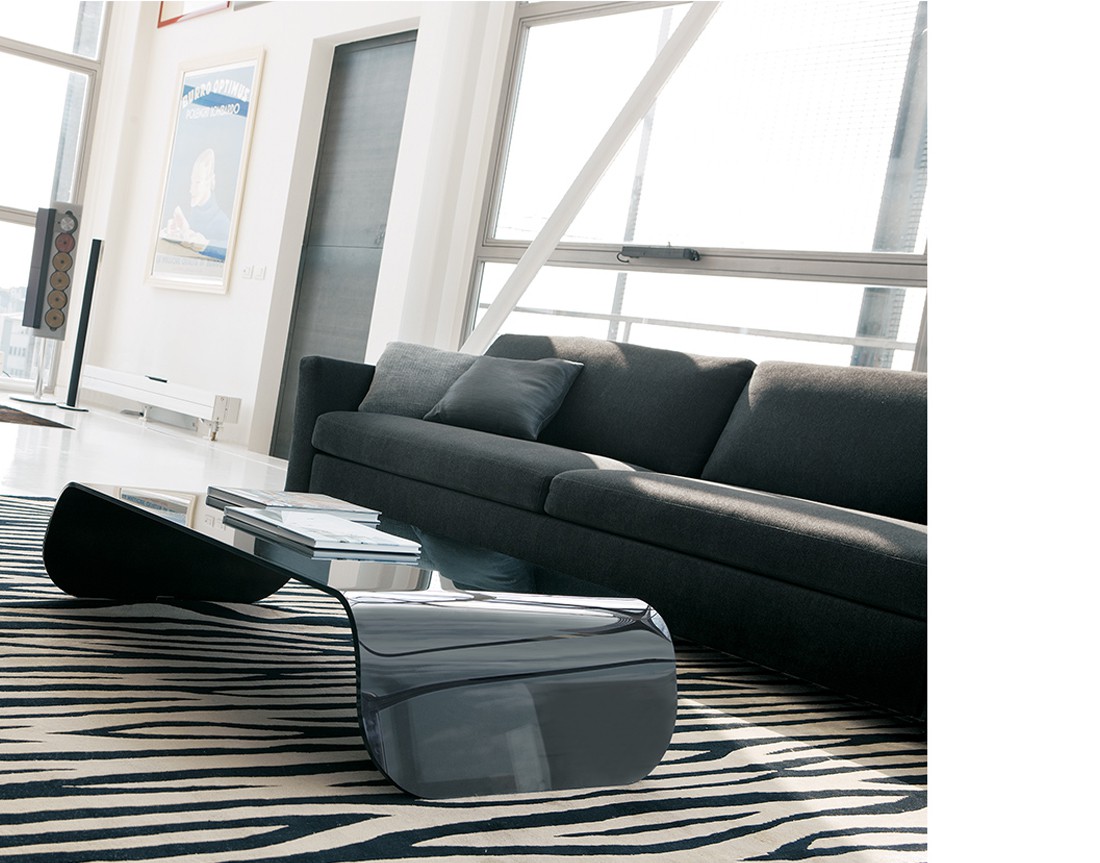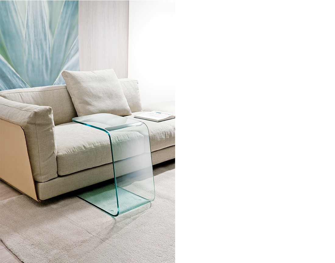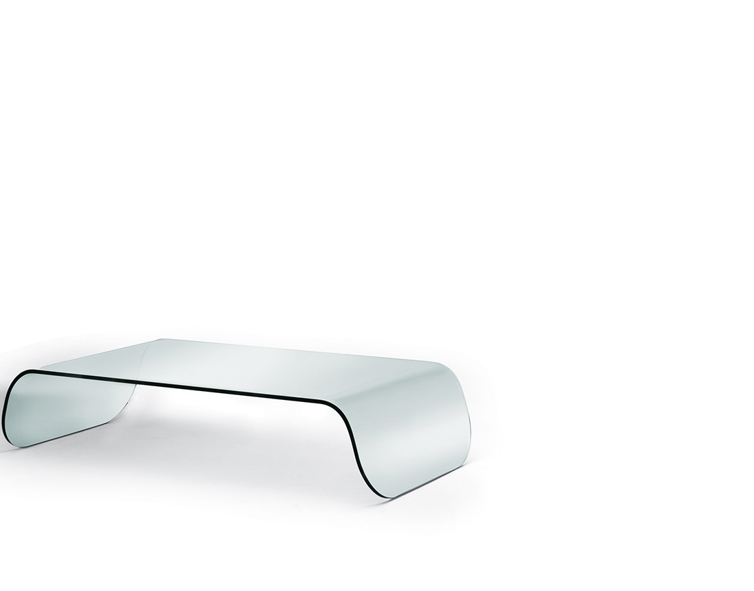 Tavolino in vetro curvato naturale o verniciato nero (sp. 10 mm).