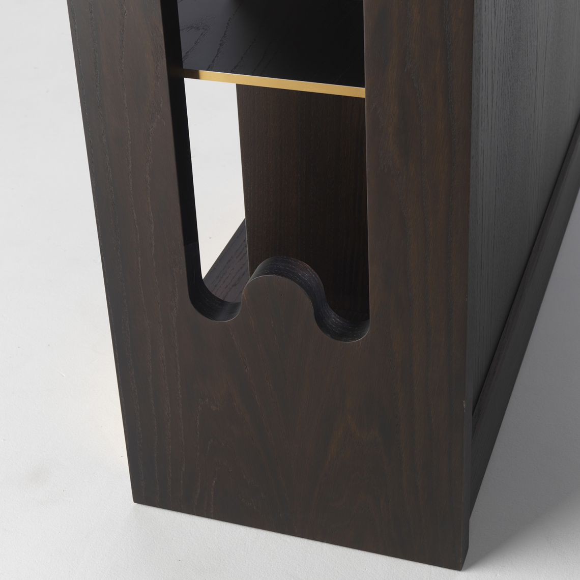 i montanti verticali sono realizzati in differenti profondità. L’apertura sui fianchi è pantografata secondo un decoro sinuoso che ne spezza il ritmo regolare. Ideale la composizione di più elementi affiancati tra loro.