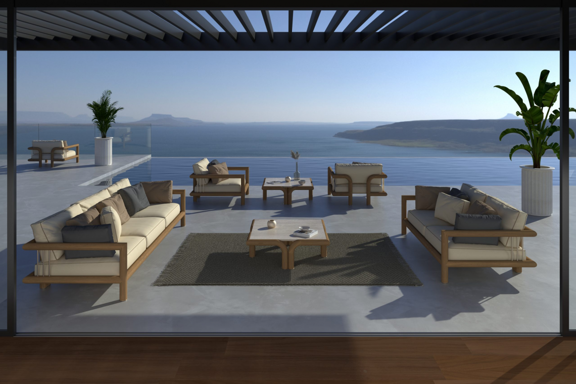 legno massello di Iroko, spazzolato e tinto ad olio naturale