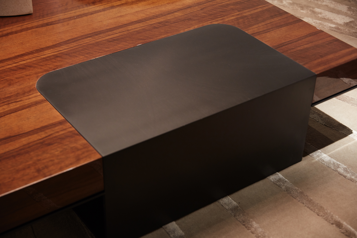 I coffee table sono propost1 in tre qualità pregiate di marmo: Grand noir Antique, Calacatta, Sahara Noir.