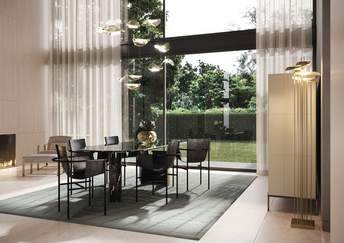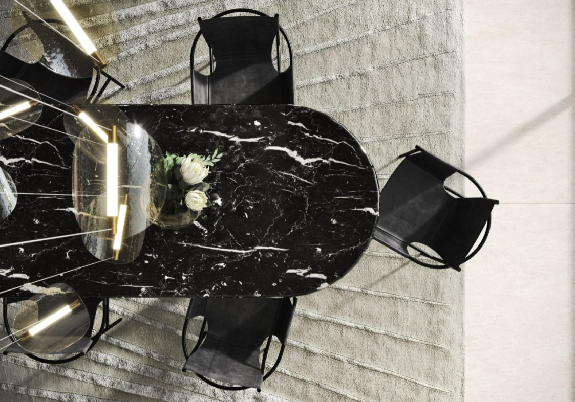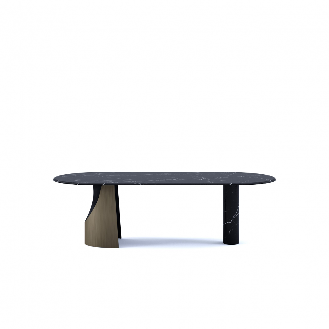 Nella versione rotonda si intersecano una base centrale, nella versione ovale sono due elementi distinti e danno al tavolo una speciale allure.