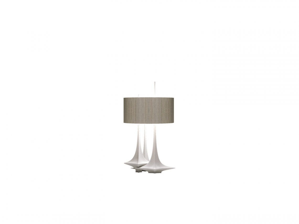 Lampada con base realizzata in ceramica artigianale di Faenza color bianco opaco. Il paralume -100% naturale- è realizzato in fibra di canapa nepalese. Sorgente luminosa E27.