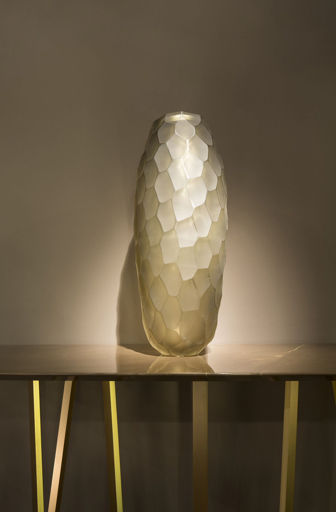 L’attuale risultato di questa preziosa collaborazione, sempre tesa a coniugare saperi antichi ed estetica contemporanea, è un’inedita sperimentazione di forme e cromie pastello, trasparenti o opaline.