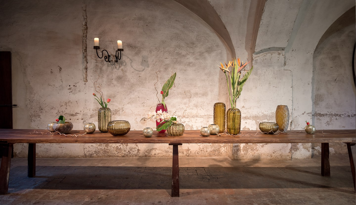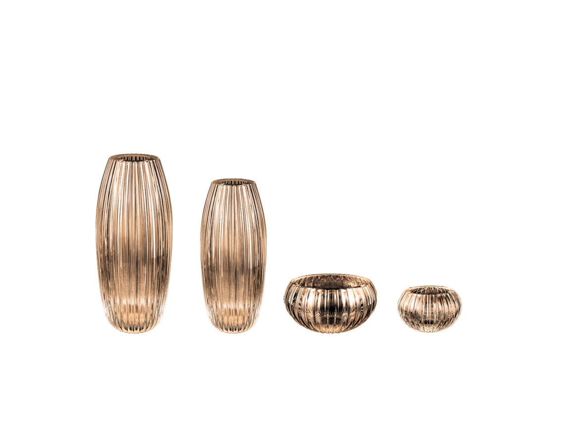 L’attuale risultato di questa preziosa collaborazione, sempre tesa a coniugare saperi antichi ed estetica contemporanea, è un’inedita sperimentazione di forme e cromie pastello, trasparenti o opaline.